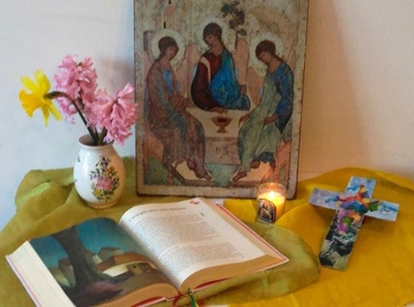 Pour ce faire, Jésus choisit le même trio, c’est-à-dire Pierre, Jacques et Jean, les trois mêmes qu’il choisira pour l’accompagner au Jardin de son agonie, à Gethsémani. Et là, il fut transfiguré à leurs yeux, son visage se couvrit de l’habit de Dieu, à savoir la lumière… Quand tu pries en profondeur, sais-tu que l’aspect de ton visage change ? Ton visage intérieur transparaît … Et là, qui voit-on ? Les deux colonnes de l’Ancien Testament, Moïse et Elie, pour signifier que c’est lui, le Christ, qui éclaire et accomplit l’enseignement de Moïse (Tables de la loi), l’enseignement des prophètes représentés par Elie. Avec Jésus, ils parlaient de sa passion, de sa mort et de sa Résurrection…